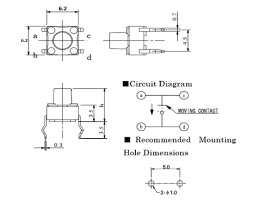 - Altura del botón: 1mm